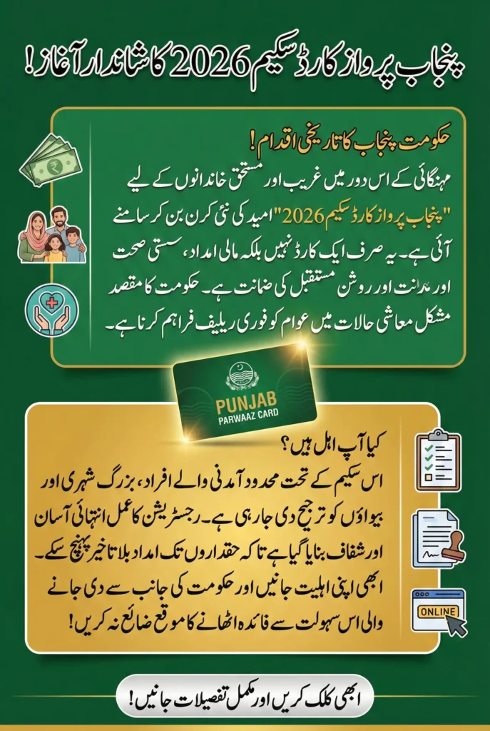 Punjab Parwaaz Card Schemes 2026 are among the most talked‑about social support initiatives in the province this year. Announced with much anticipation by Punjab government officials, this program aims to provide financial assistance to vulnerable families and individuals who need extra support in today’s difficult economic climate.